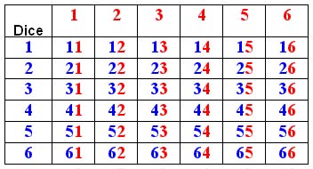Backgammon Opening RollsWhen discussing opening rolls in backgammon, you can consider the following possible rolls of two dice. One of the dice is represented as blue and the other dice is represented as red. Altogether there are 36 different roll possibilities, which you can see in this table: ![]() There are six possible doubles, each of which can only occur once, plus each of the non-double rolls can occur twice, which means that altogether there are just 15 possible opening rolls and five of these will always be played in an identical way. 65 is played by running one back checker to the middle point (24/13), 61 is played by making the bar-pt (13/7), 53 is played by making the 3-pt (8/3, 6/3), 42 is played by making the 4-pt (8/4, 6/4) and 31 is played by making the 5-pt (8/5, 6/5). Choices are provided for all other opening rolls and there are a total of three different types of choices: