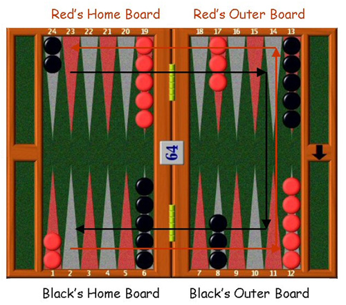 Setting up the Backgammon BoardBoth players have 2 checkers on their 24-point, as well as 5 checkers on their 13-point, 3 checkers on their 8-point and 5 checkers on their 6-point. You will always find each player’s 13 and 24 points on the far side of the board and their 6-point an 8-point will be located on the near side. Looking at the board from the opposite side, the points will appear in reverse, which means that your opponents 12-point is therefore your 13-point, your opponents 22-point is your 3-point, and so on. ![]() With this in mind, your opponents image will always seem like a mirror image. For example, your 1-point will be on your left but your rival’s 1-point will be to the right. If you are moving anti-clockwise, your opponent will move clockwise, which you can see from the diagram. It doesn’t matter which way the board is initially set up. ![]() You will notice that the numbers on a backgammon board are not actually displayed and also that the doubling cube will initially be placed in the middle of the board, showing the number 64 (which also acts as 1). |